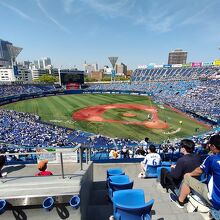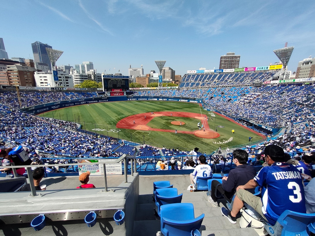 DeNAが親会社になってから、改装したこともあってか、広々として、また横浜ブルーのシートがまぶしかったです(良い意味で)。