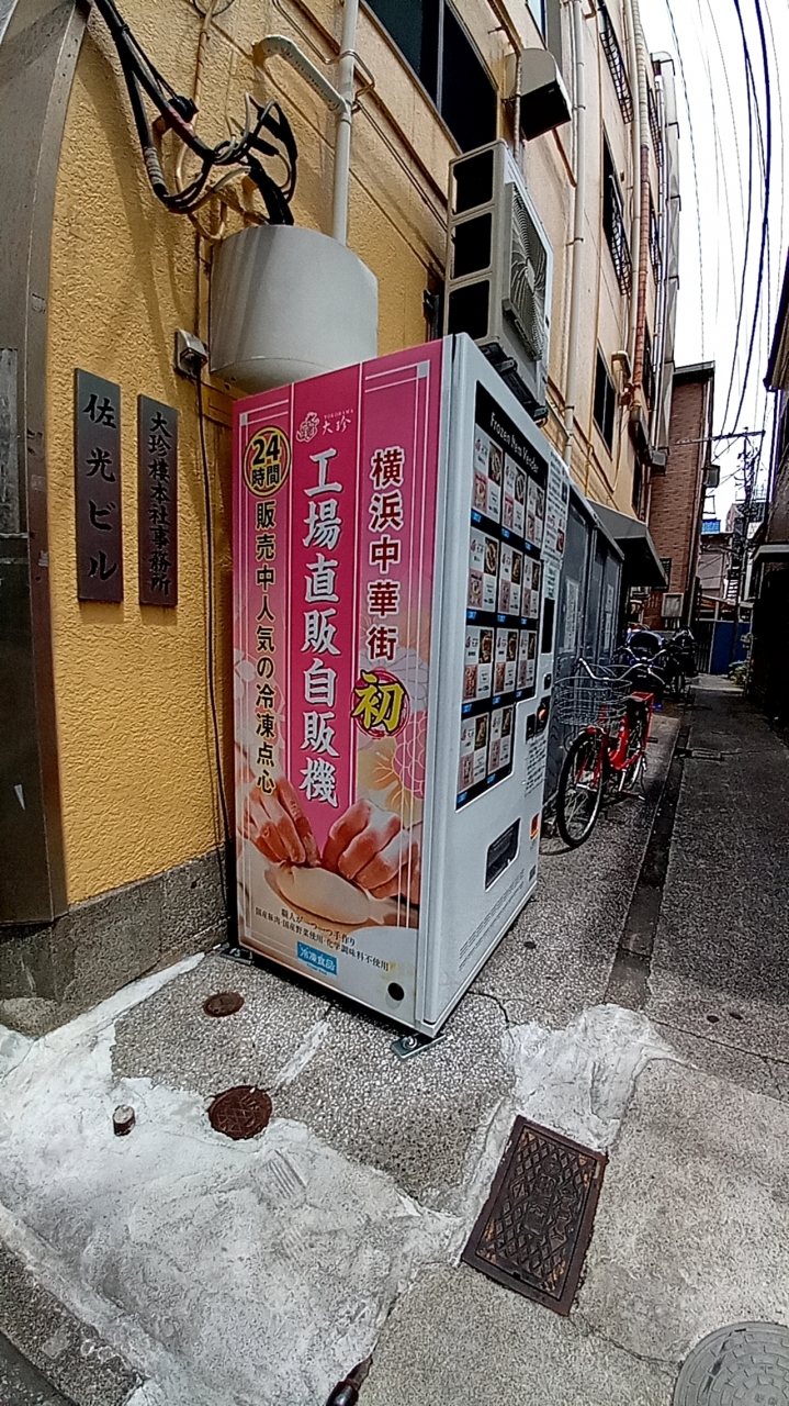 神奈川県・横浜の『横浜中華街』にある『大珍樓』さんの点心が24時間購入することが出来るようになりました。大珍樓の本社工場の横に『工場直販自販機』が設置され、人気の冷凍点心が24時間販売されています。『横浜中華街初』の自販機です。