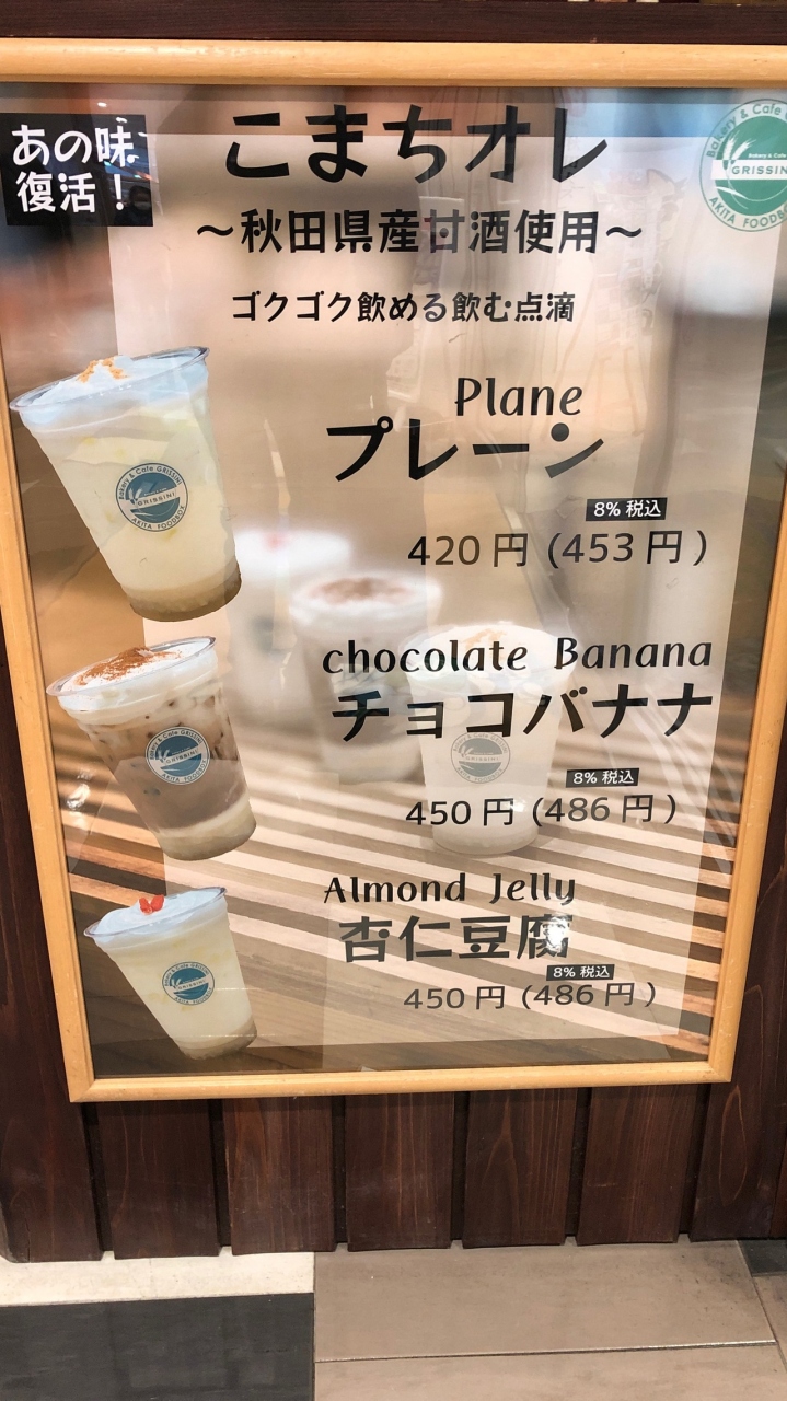 エリアなかいちの商業施設1Fにあるベーカリー・カフェです。パンの種類が豊富です。広めのカフェスペースもあり、くつろげます。秋田県産甘酒を使った「こまちオレ」という飲み物が、この店独自のメニューだなと思いました。