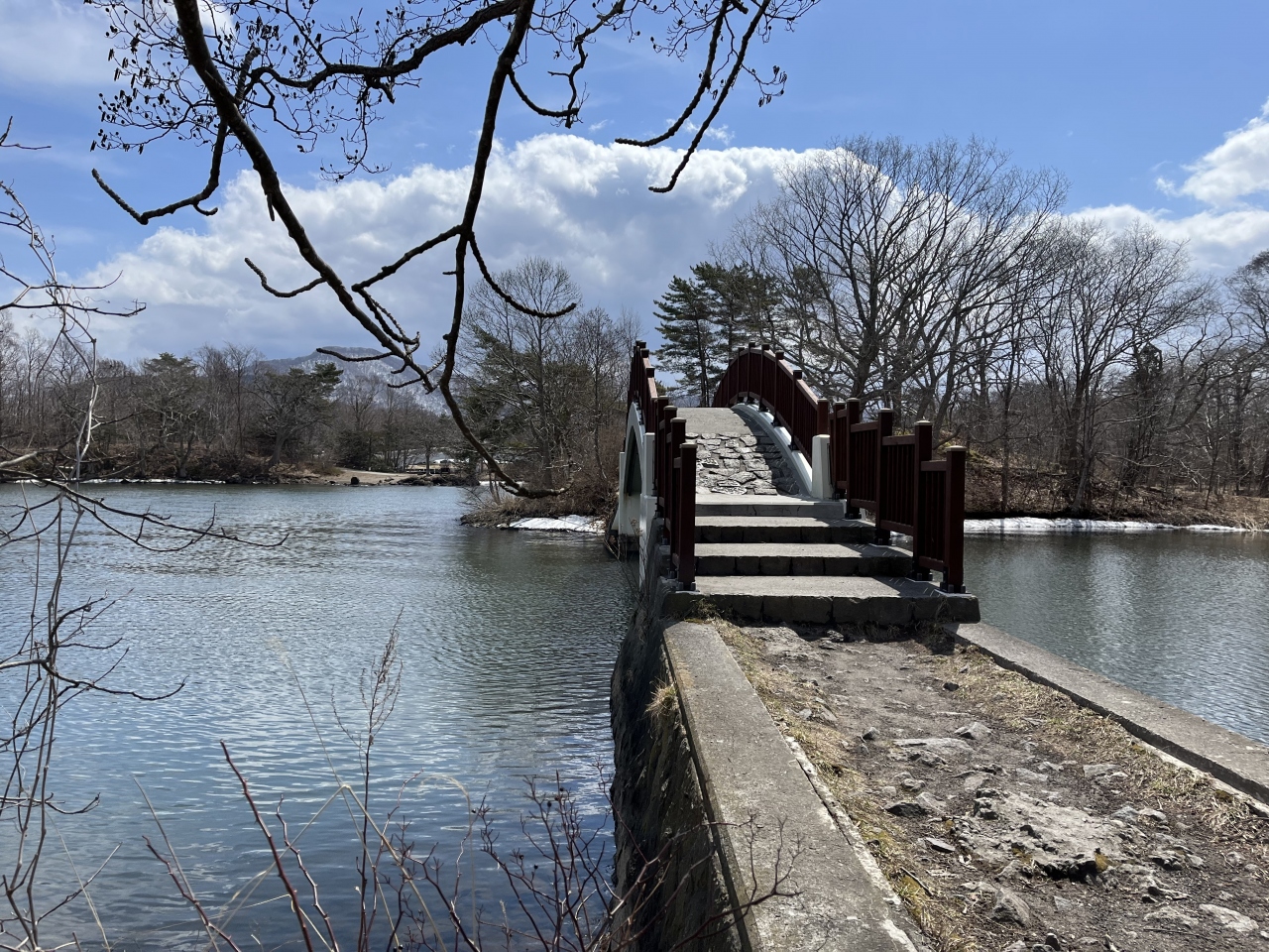 大沼国定公園の中心となるのが「大沼」です。大小の島々がいくつも浮かんでいて、その数は120以上にもなるそうです。散策路に沿って公園内を散策すると、自然の造形美を堪能できます。大沼と一緒に見る北海道駒ケ岳も美しいですし、島と島に架かる橋も絵になる風景でした。