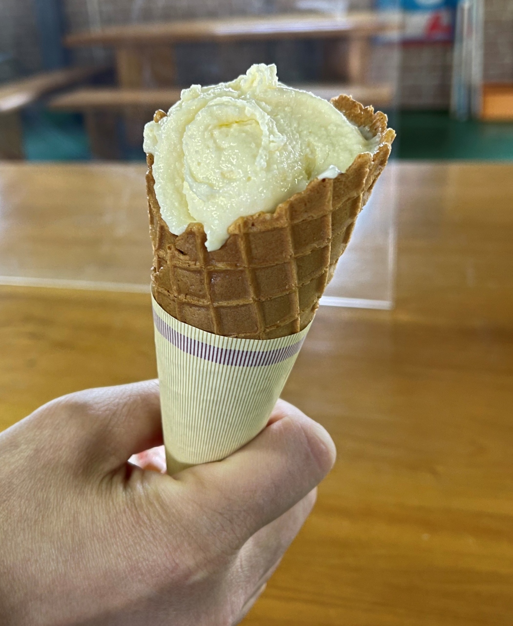 大沼のミルクロード沿いにある牧場で、チーズやアイスクリームなどの乳製品が購入できます。楽しみにしていたソフトクリームは夏季のみの提供だったので、今回はアイスクリームとモッツァレラチーズをいただきました。とても濃厚で美味しかったです。次回は、是非ソフトクリームも食べてみたいです。