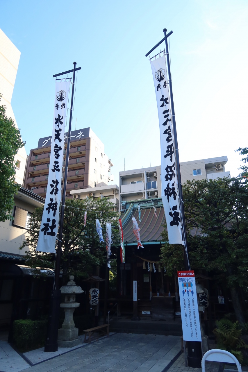平沼橋駅南口から線路沿いに下がったすぐの所に水天宮平沼神社があります。平沼・高島の氏神様とされる神社で1839年に平沼新田を開拓した平沼九兵衛による創建と言われています。安産祈願、水の神として親しまれています。境内には摂社もあり、意外と立派な神社でした。