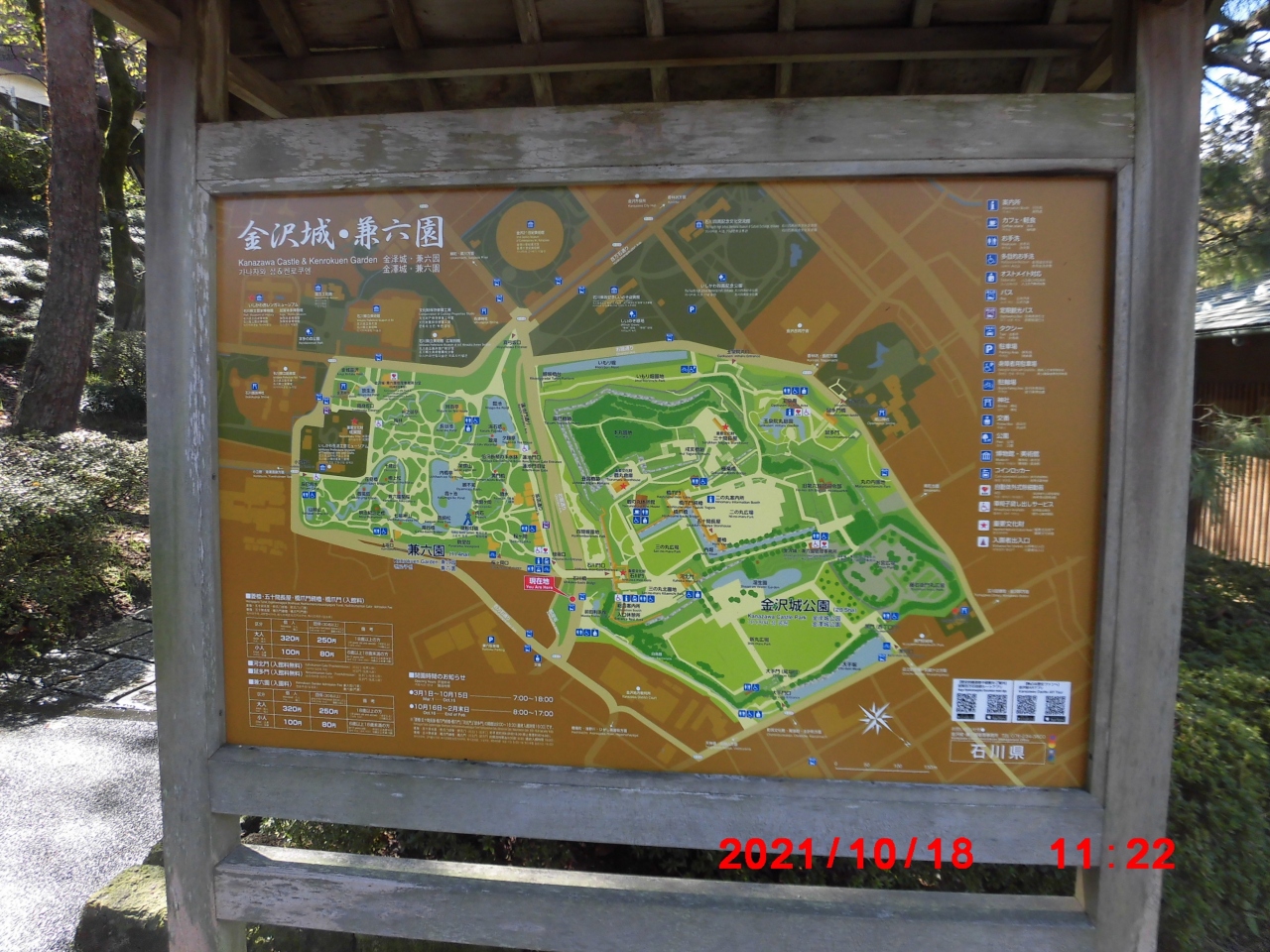 金沢市観光で立ち寄りました。兼六園(石川県金沢市) は、水戸偕楽園、岡山後楽園とならぶ日本三名園の一つで、江戸時代の代表的な大名庭園です。広い敷地に、池、築山、御亭を配置した「廻遊式の庭園」です。入口でもらった園内案内図を見ると30ヶ所近い見どころがあるのにちょっとびっくりでした。