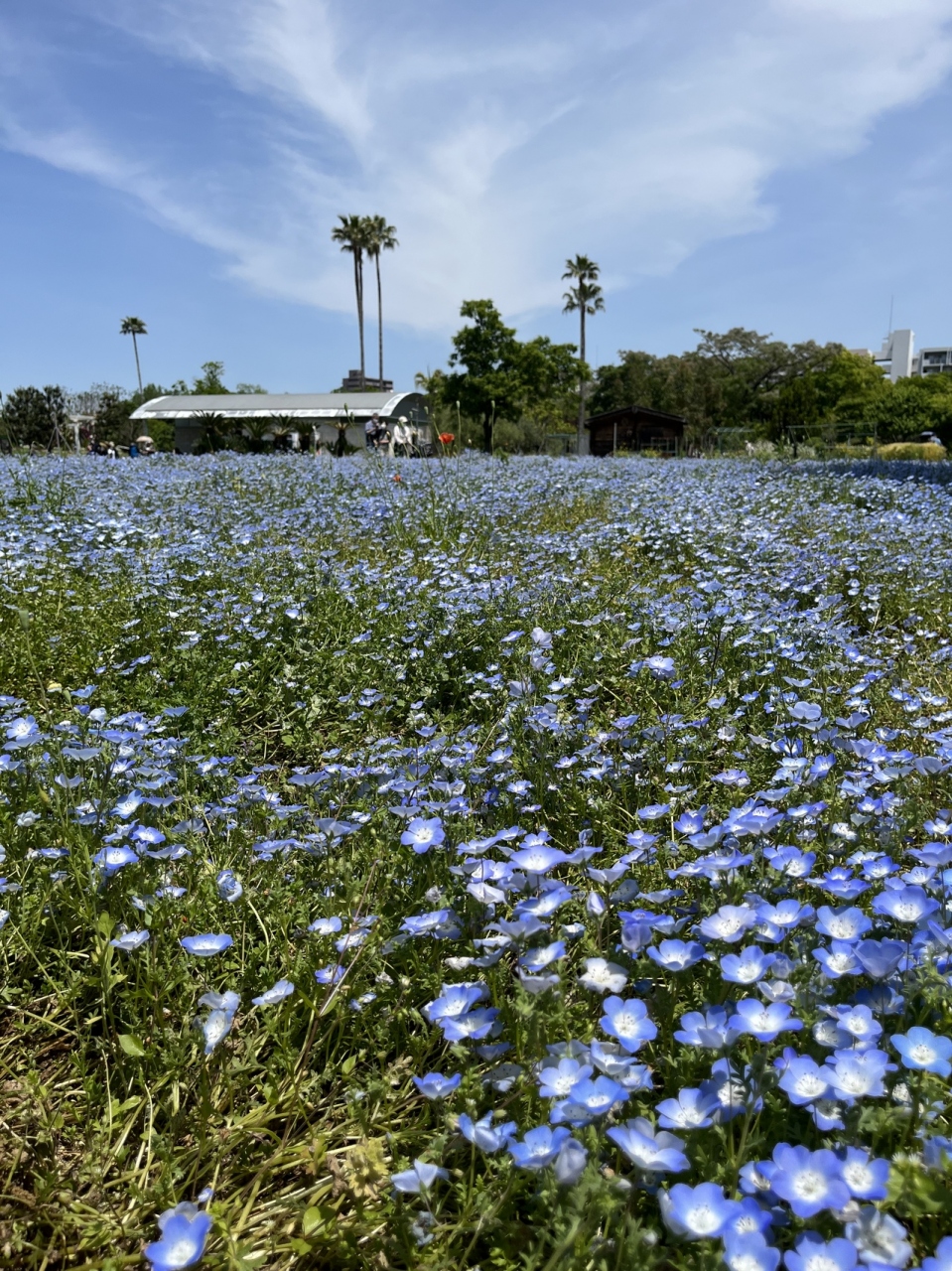 長居公園に隣接する長居植物園は四季折々の植物が植えられており、季節ごとに楽しめる植物園になっています。植物園というよりは観光農園のようで、入場料200円とリーズナブルにもかかわらず、花壇を楽しまめす。訪問期のGW最終日にはネモフィラが満開でした。