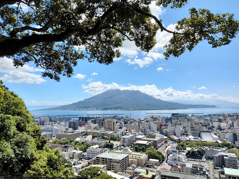 到着までは大変でしたが、展望所から見る鹿児島市内、桜島の景色は圧巻で、疲れも吹き飛びます。