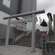 妙義神社の境内に行く階段には、鯉のぼりが泳いでいました。