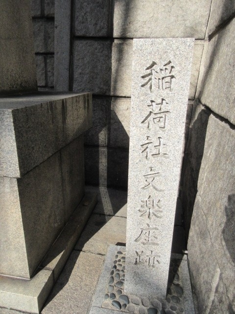 大阪の観光で難波神社を訪問しました。その難波神社のところに石碑があり、そこが稲荷社文楽座跡でした。江戸時代にこの神社の稲荷社に浄瑠璃の小屋ができて、そののちも明治時代に浄瑠璃の場としてにぎわったそうです。現在は石碑だけで、少しわかりにくいけれど、歴史を感じました。