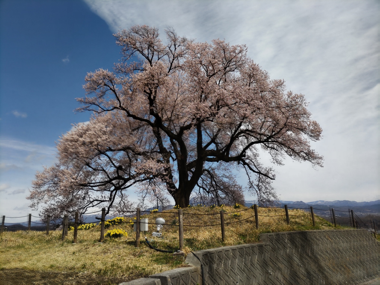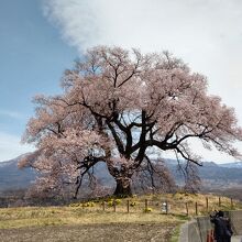 - 古墳後に植えられたとされる樹齢330年の一本桜は見事です。