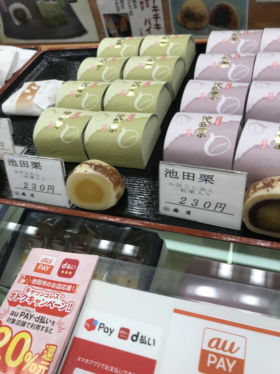 池田で老舗の和菓子屋さんといえば、こちらの香月さんです。今回池田市の20%キャッシュレスキャンペーンの対象店ということで、老舗ながら企業努力もしてはります。炭最中と迷いましたが、今回は一粒栗にしました。程よい甘さの栗は癖になりそうです。スタッフもとても感じがいいです。