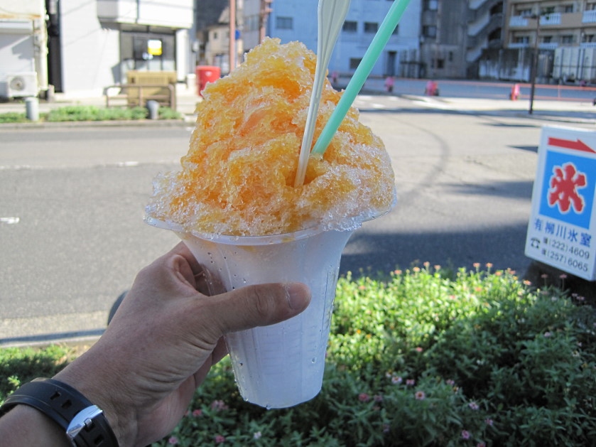 頼んだのはマンゴーかき氷、シロップもマンゴーの味が濃くて、氷のボリュームも満点、これで350円ですから、コスパの良さに脱帽です。
