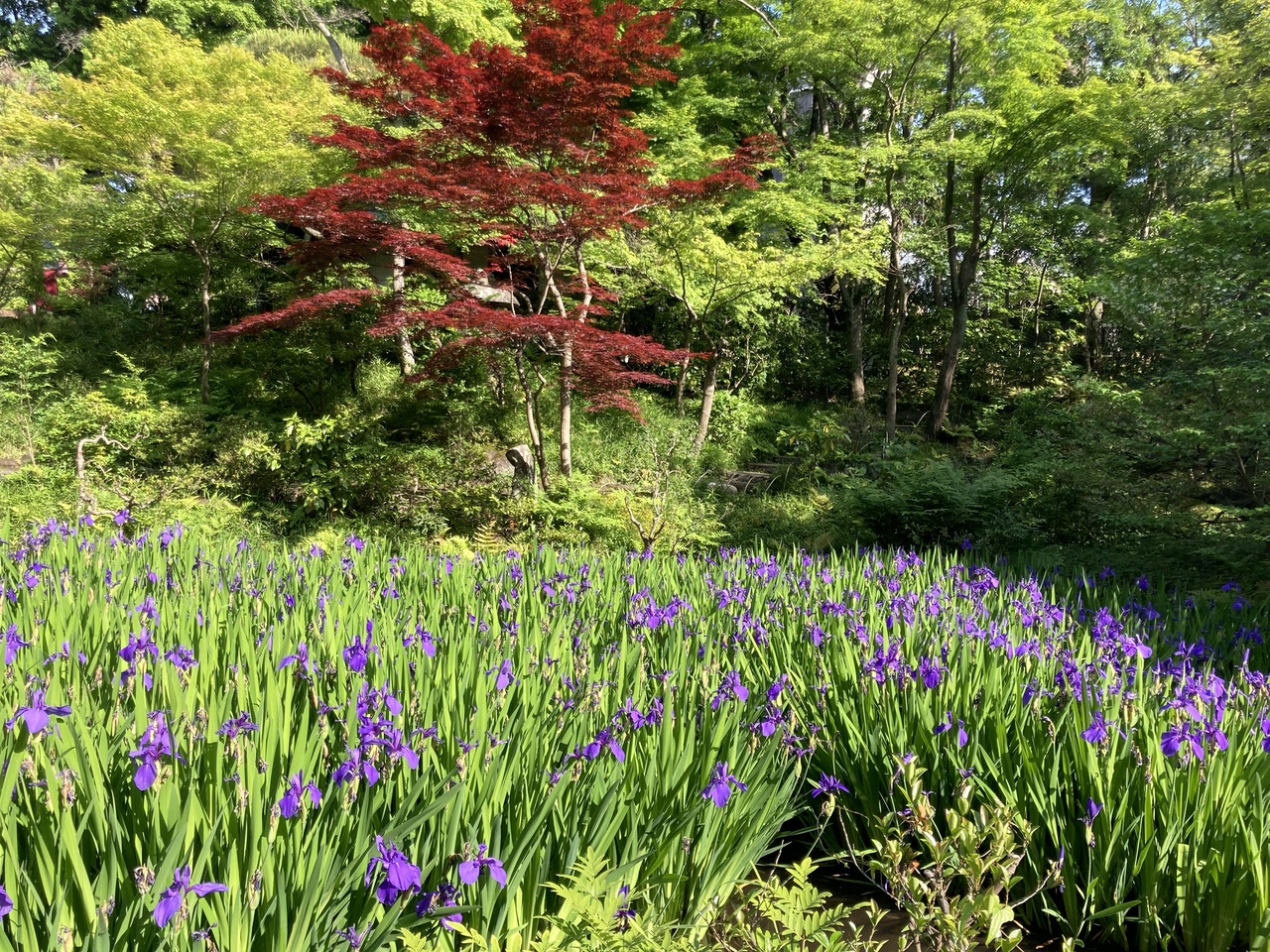 大都会にいるとは思えない庭です。盛りを過ぎてはいましたが、カキツバタの花も見られました。