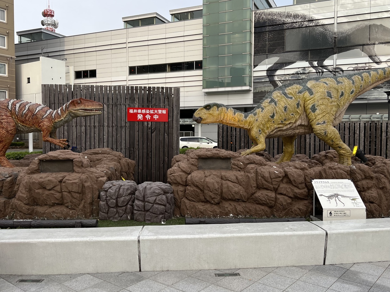 恐竜のモニュメントがあり、恐竜の鳴き声が聞こえました。