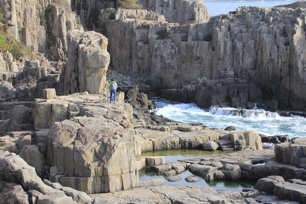 なぜここまで切り立った岩場になっているのか、それは東尋坊で海を目指して歩いて行くとよく分かります。
