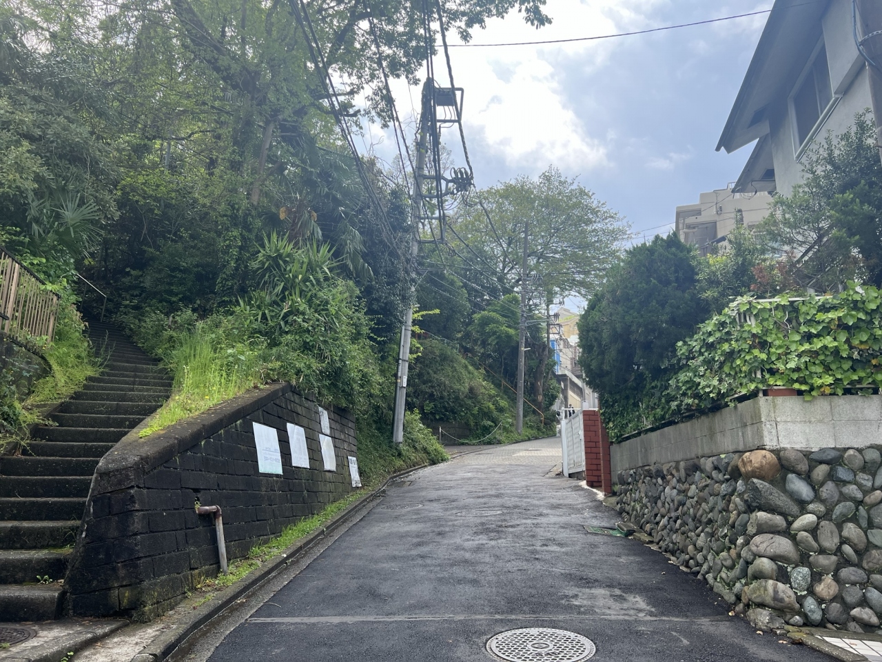 JR保土ヶ谷駅の近く、国道1号線から南へ分岐している急坂です。坂の途中には「いわなざか」「いわな坂」と書かれた柱が立っています。この坂は「かなざわかまくら道」の一部で、ここからすぐ北にある旧東海道・保土ヶ谷宿跡には、「かなざわかまくら道」と刻された江戸当時の道標(石碑)があります。