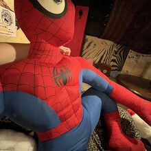 大きな〈スパイダーマン〉と一緒に お食事開始!