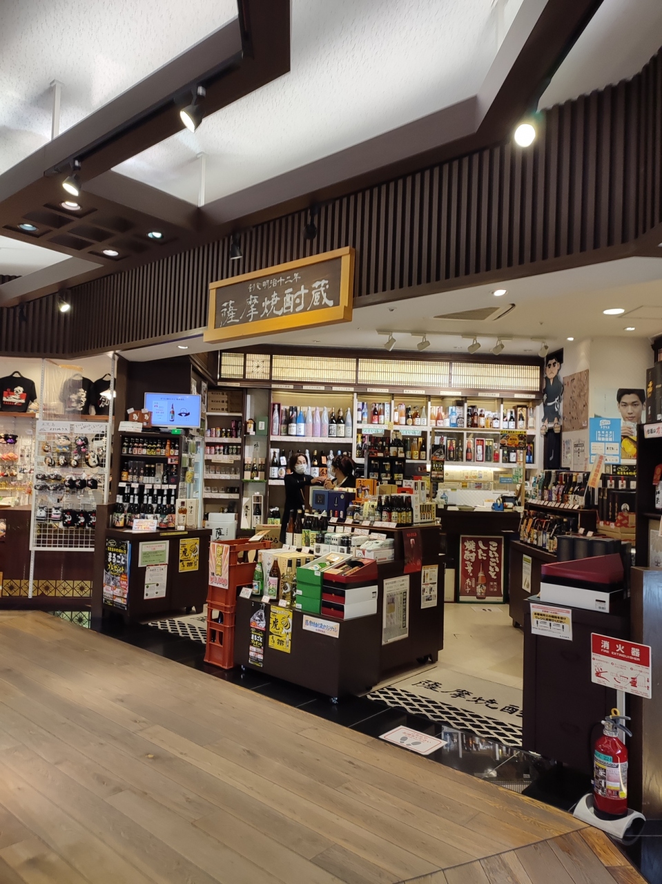 鹿児島中央駅にあるみやげ横丁とというお土産屋さんが集まった場所の一角にあります。その名の通り鹿児島名物である焼酎がたくさん並んであるショップです。かなり品揃えは良好だと思うので、焼酎であればどうせ送ると思うので、空港利用の場合でもここでの購入が便利だと思います。