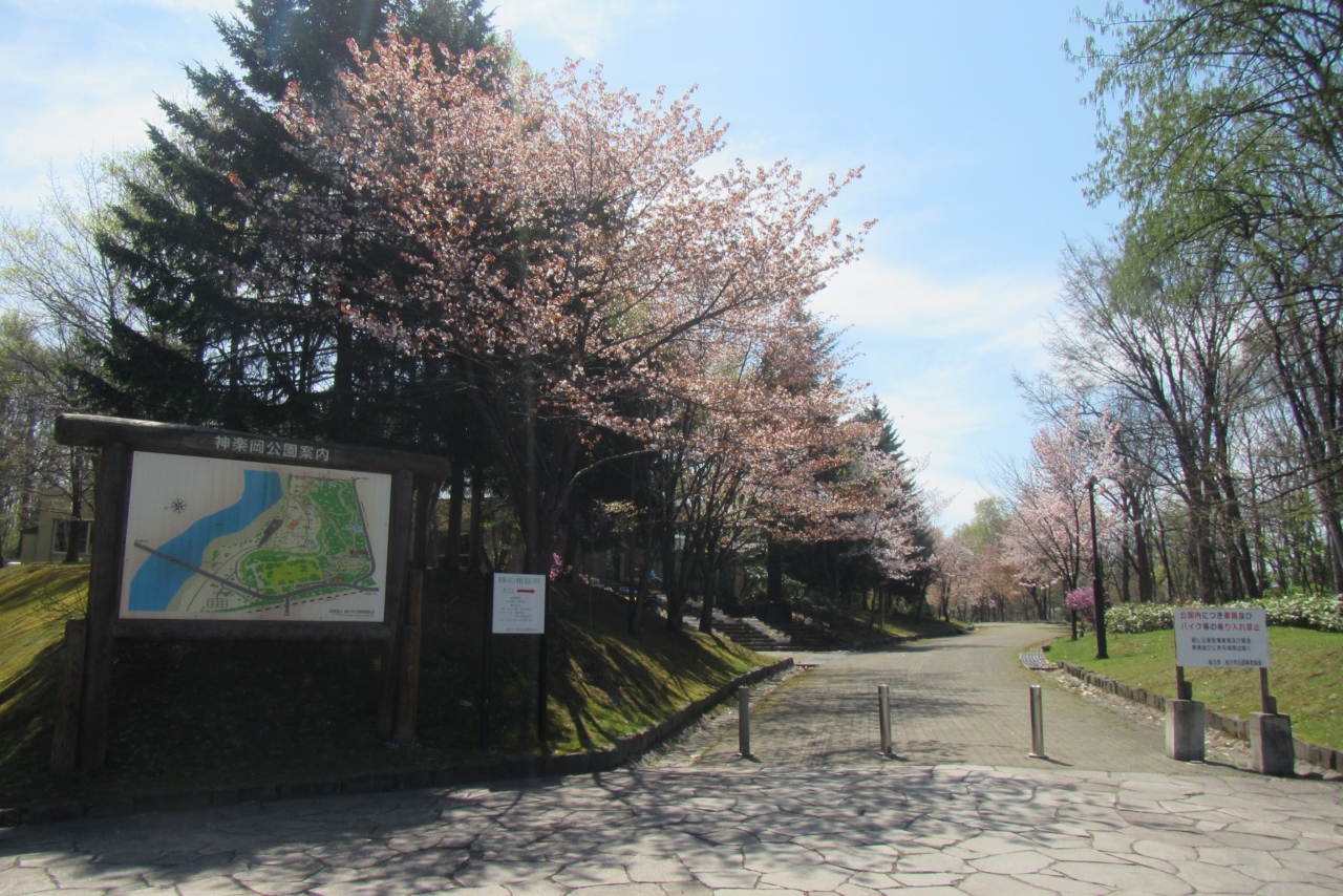 旭山公園や春光台公園、常磐公園などとともに旭川の桜の見どころの一つで、特に緑のセンター前や忠別川低地に下った自由広場方面によく咲いています。