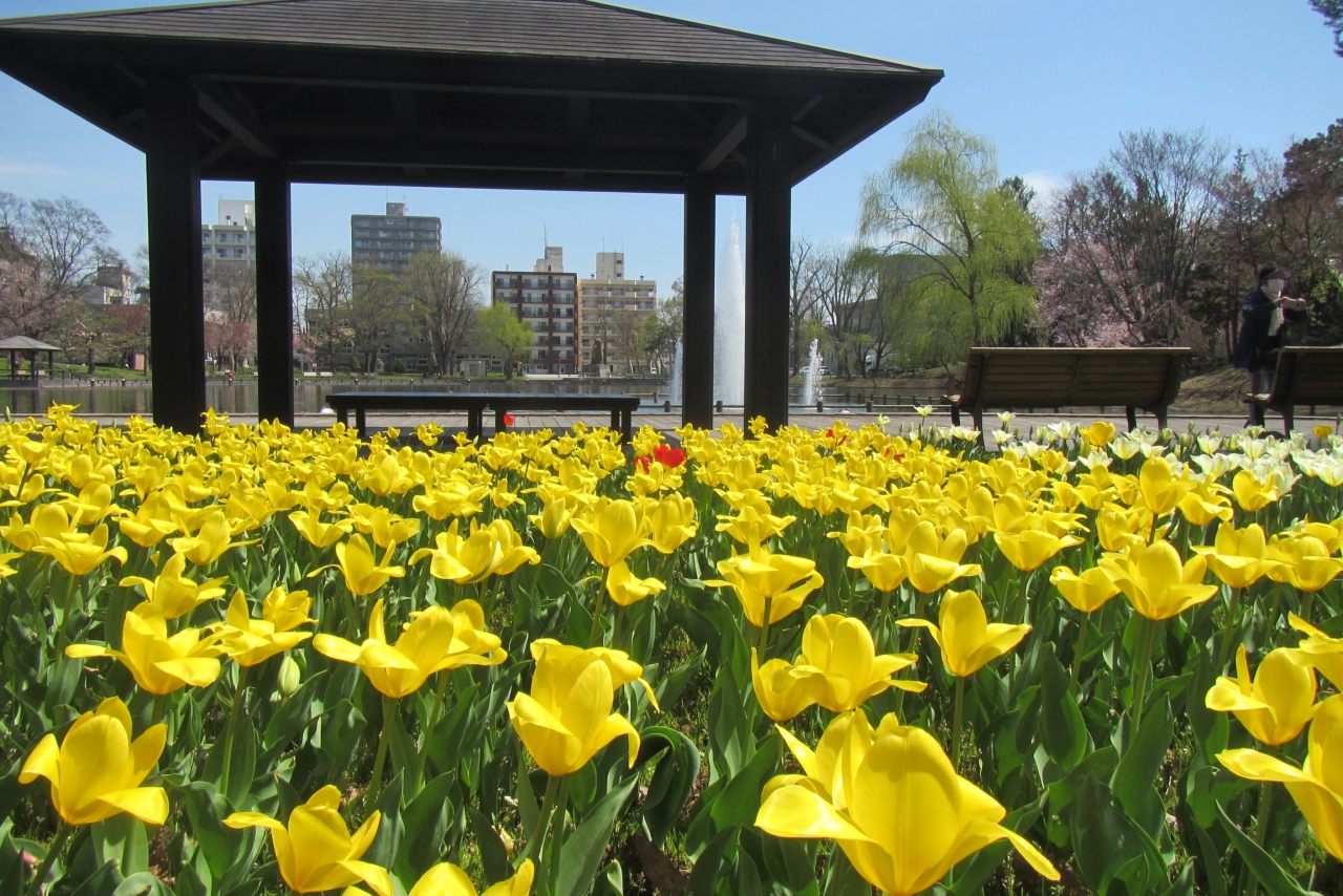 旭川では、旭山動物園のある旭山公園や春光台公園、神楽岡公園など桜の見どころがありますが、常磐公園は旭川中心部にあって、旭川駅からも比較的アクセスしやすい桜の見どころです(旭川駅から徒歩19分・1.5km(Googleマップによる))