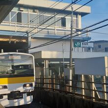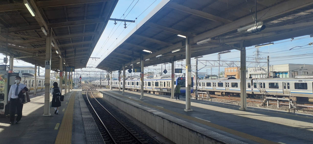 西口は京成電車の幕張駅まですぐで、ホームからも京成電車の踏切が見えました。