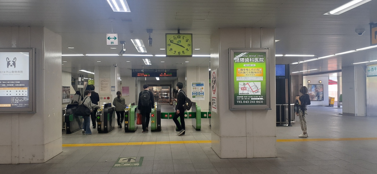 JR総武線各駅停車(黄色の電車)のみが停車する駅で、千葉駅の隣の駅です。