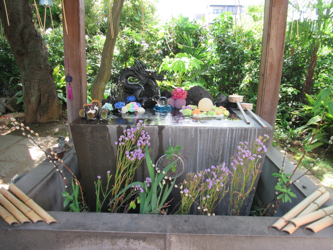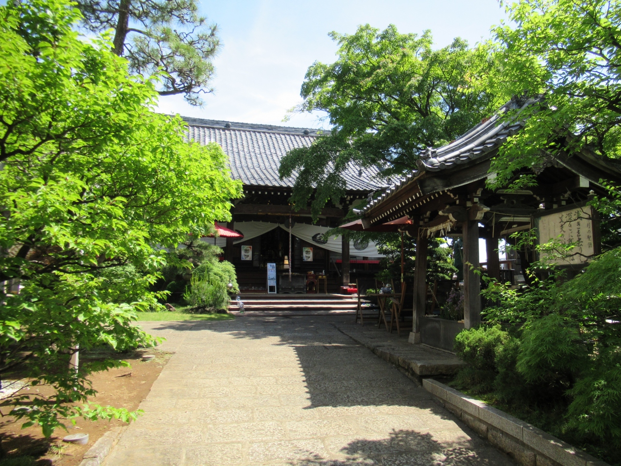 東西線早稲田駅から2分ほど、早稲田通りと諏訪通りが交わる馬場下町交差点そばに建つ日蓮宗の寺院です。階段上の木造の山門をくぐった先には、紅葉や枝垂れ桜、松、藤などの手入れが行き届いた草木が植えられています。手水舎には生花が浮かび、寺の随所に住職が入れ替えを行っている花手水が置かれ、参拝客を優しく出迎えてくれています。色々な御朱印があり、住職さんデザインの切り絵の御朱印や、月ごとに異なる花が描かれた御朱印、納経を書き入れた御朱印などをいただくことができます。庫裡の庭にもきれいな花が植えられていて、住職さんの草花を愛する気持ちが伝わっていました。
