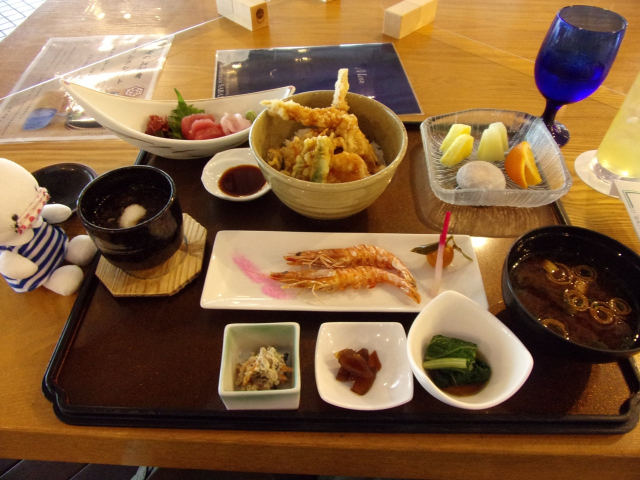 島でとれた車海老ともずく、深海魚の刺身がいただけました。