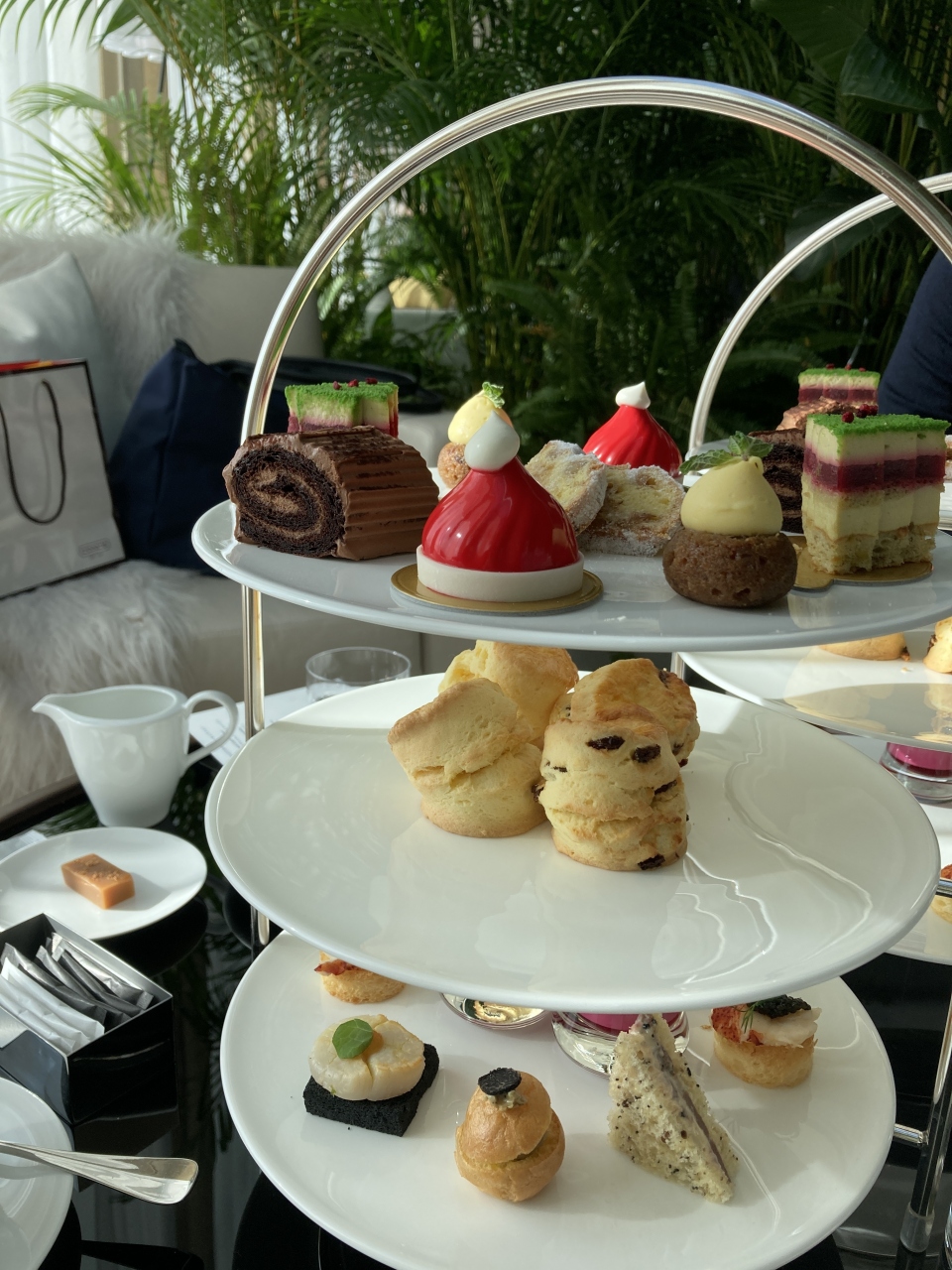 アフタヌーンティーは時期がらクリスマス仕様。スイーツもセイボリーも一つ一つ小ぶりでしたが可愛らしいデザインのものが多く味も美味しかったです。
