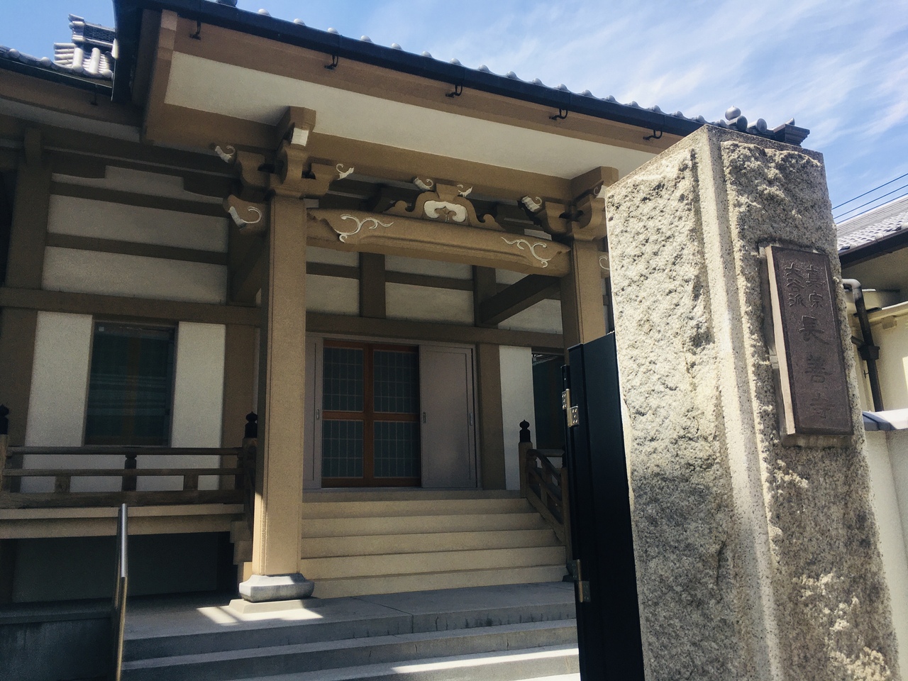 東京メトロ銀座線「稲荷町駅」から徒歩で5分ほどです。左衛門橋通りに面しており、釈宗俊が開基でこの周辺の寺院と同じく浄土真宗大谷派の寺院です。山門を入るとすぐに本堂でコンクリート造りのベージュ色建物でお堂の周りはすっきりときれいに整備されていました。