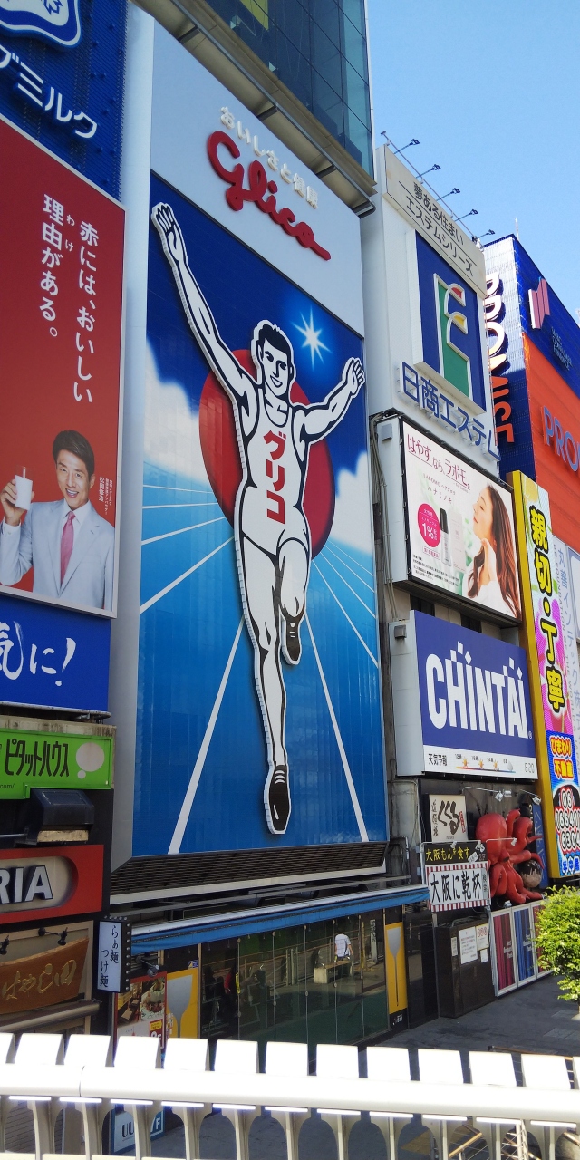 グリコのネオン看板や道頓堀界隈、通天閣などミナミには大阪を代表する観光地がたくさんあります。土曜日の朝8時過ぎに行きましたので、観光客より徹夜で飲んだヒト達が少しいたぐらいです。昼間や夕方は観光客も増えてきました。
