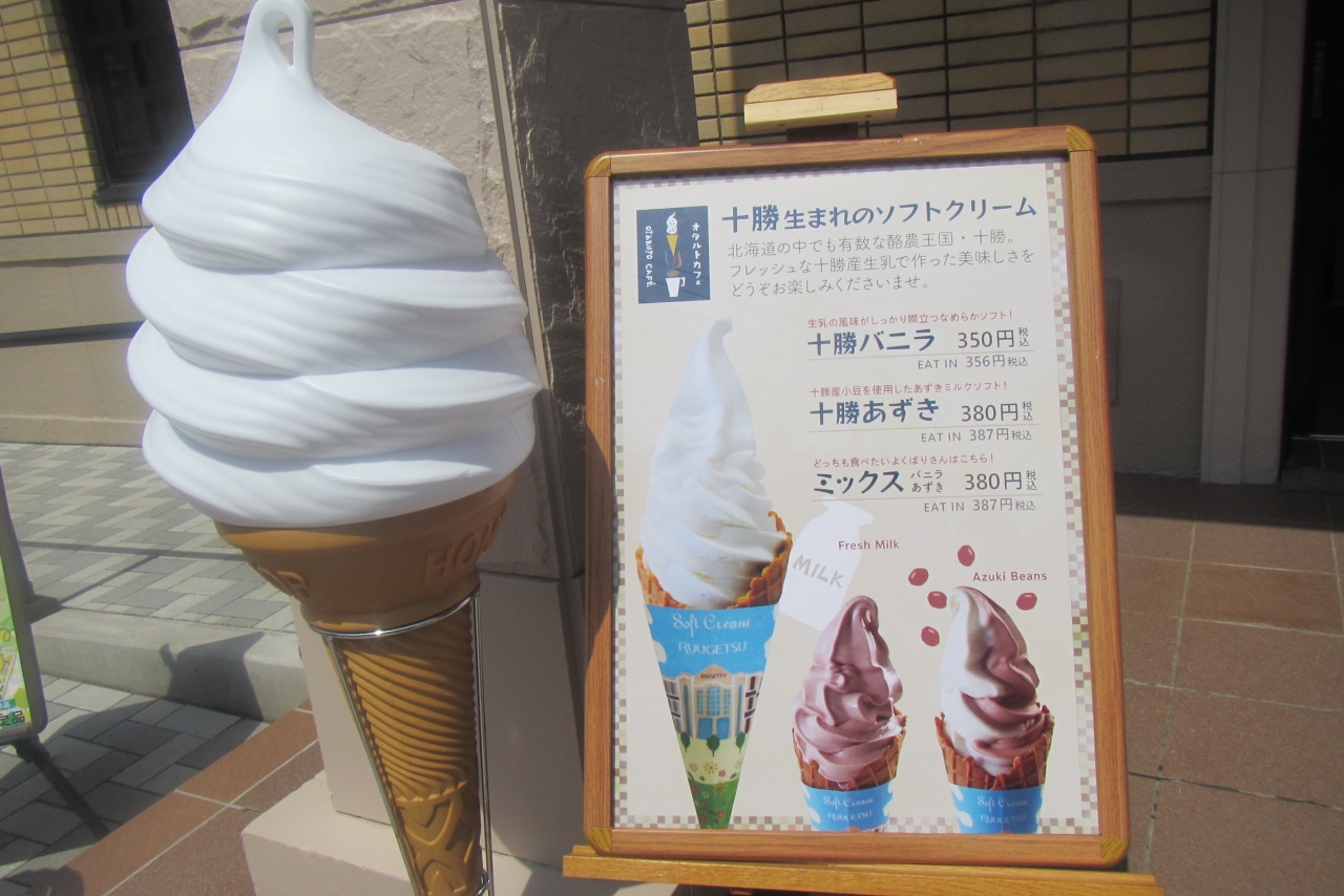 売り場のバックヤードのラウンジスペースではソフトクリームをいただくことができ、帯広の柳月スイートピア・ガーデンの十勝きなごろもソフトを思い出しましたが、オタルト店のソフトクリーム(十勝あずき)は小豆バーを彷彿とさせる小豆風味の濃い美味しいソフトクリームでした。