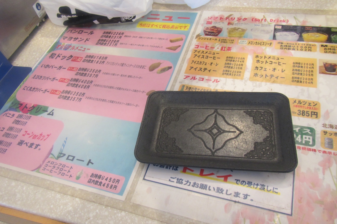 カフェの窓口メニューは限られていて、パンロール、和ドック、いかバーガーなどのバーガー類、ソフトクリーム、コーヒーなどに限定されますが、折角訪れたのに帰るのも悲しいので買っていくことにしました。