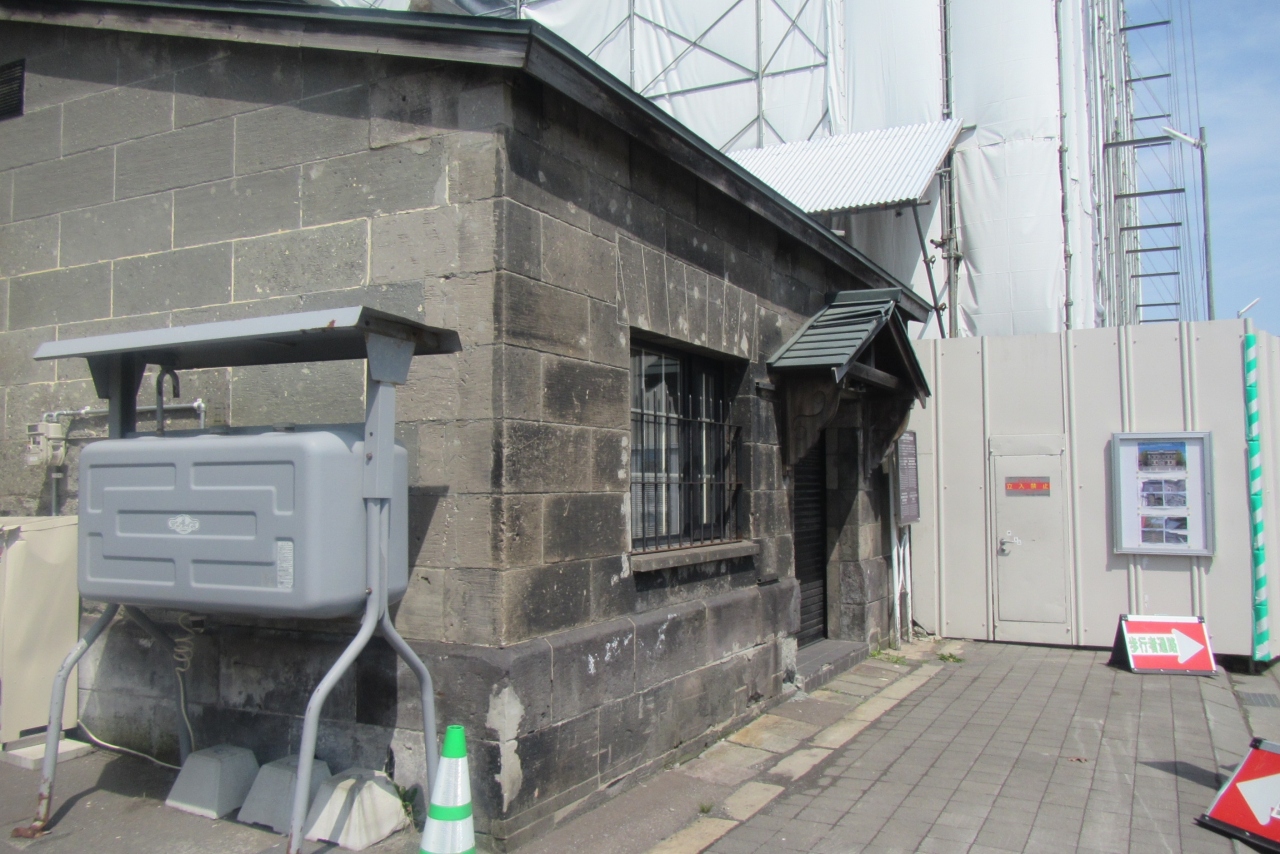 隣の旧日本郵船小樽支店の建物が2023年6月(予定)まで修復工事中で、2022年春に訪れた時は本館の建物全体にシートが被せられて、その外観すら分からなくなっていたのに対し、残荷庫の方は特に工事もなされておらず、普通に建物を見ることができました。