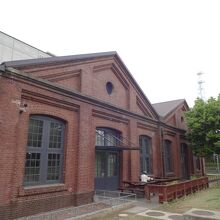 一階にある赤レンガの建物の中がカフェになっています。