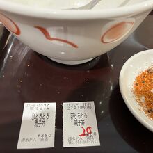 七味唐辛子を 入れて食べたいので、お店の方に 小皿をお借りしました。