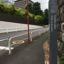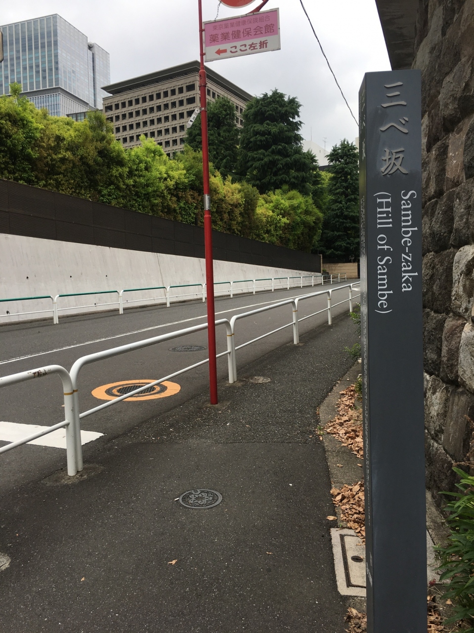 第二議員会館宿舎が直ぐぞはにあるため警察車両と警察官が常にいる坂で、交通量は少なく片側一車線の道路で歩道は左右にありました。沿線は塀や石垣で、江戸時代は屋敷が立ち並び、苗字に、ベと言う名が付いていたので三ベ坂です。