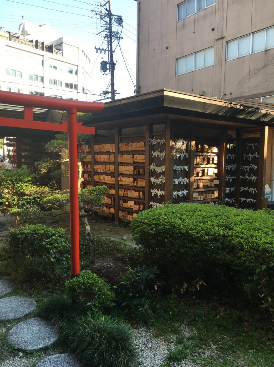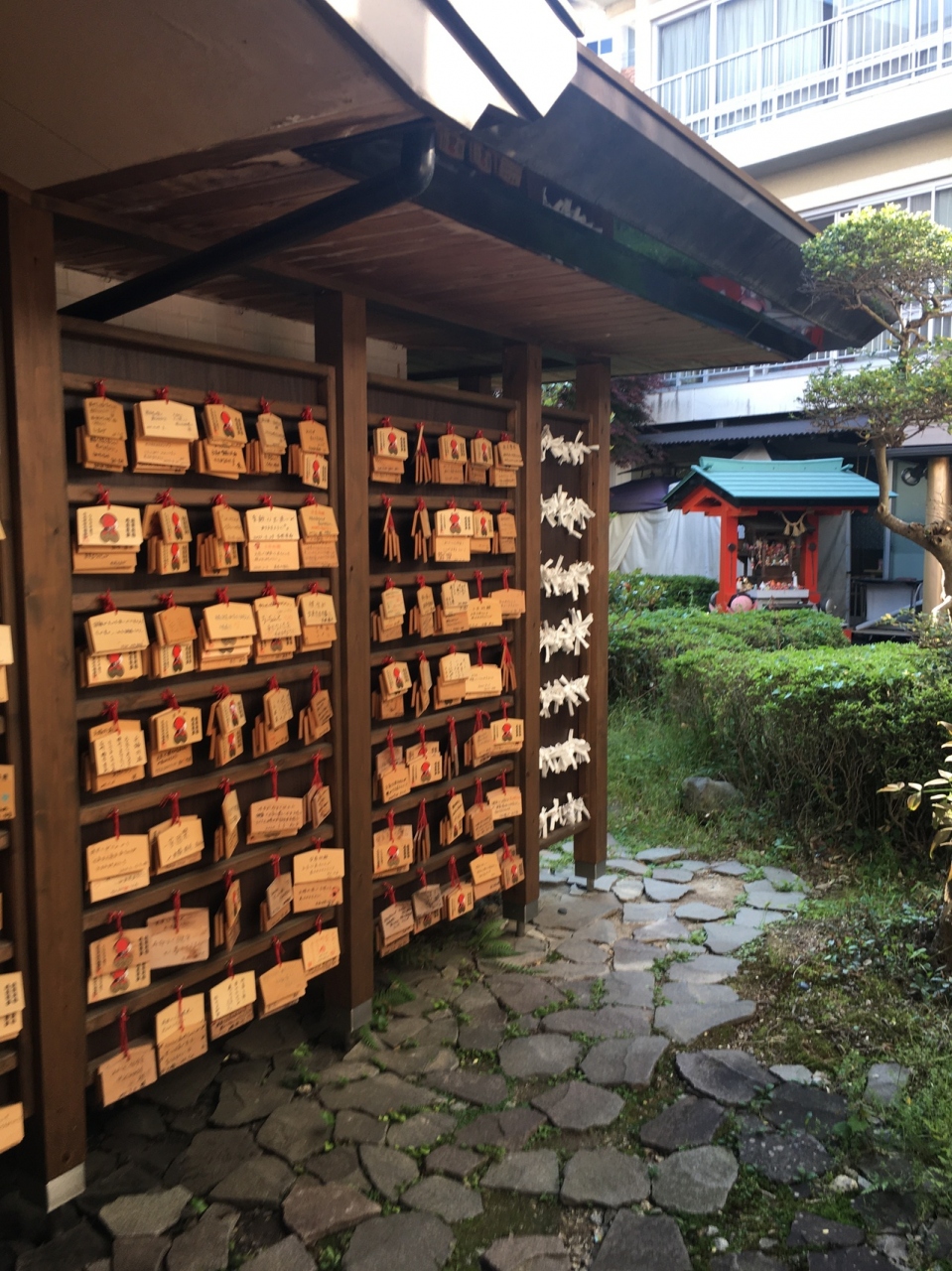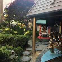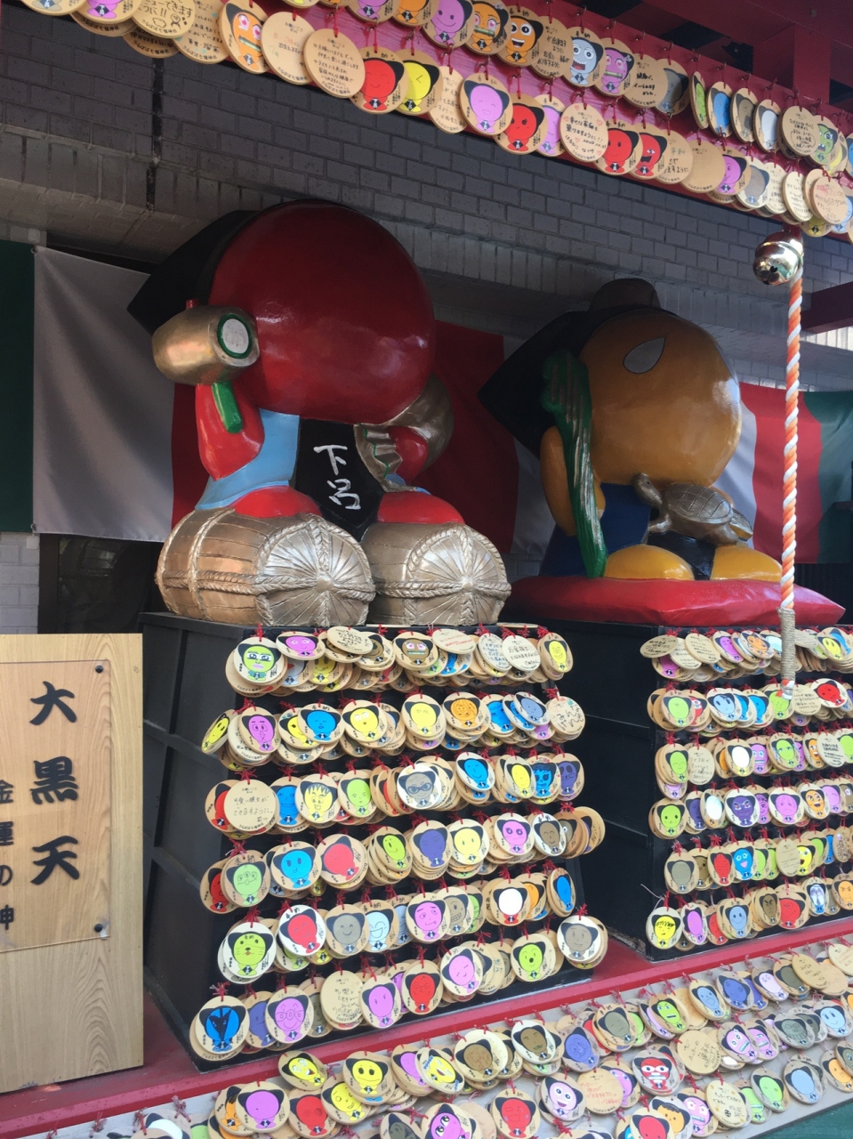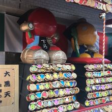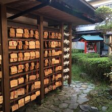 しらさぎ横丁内にあり、目の前には足湯があって、土産屋等の建物の目の前なので人が多かったです。境内は狭く、絵馬がたくさんあり、大黒天の前には丸型の絵馬もありました。遊び心ある神社で、祠には小さなおもちゃのようなものがたくさん置いてありました。
