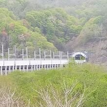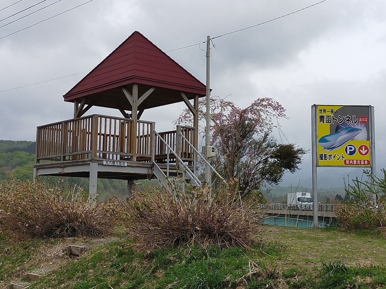国道228号線沿いに標識が出ていて、展望台の横に駐車スペースも設けられていました。小さい展望台です。青函トンネルの出口からは少し距離がありますが、線路が高架橋でもあり、新幹線の列車の写真をとるには,適度な距離です。列車の通過時間を調べてからの訪問が必要です。列車がないと、ただの高架線路でした。
