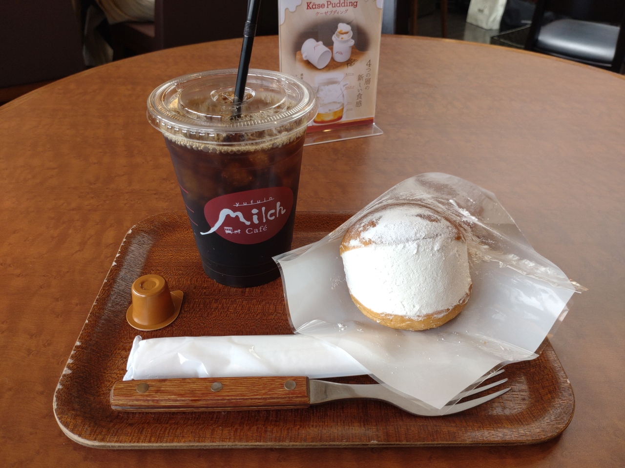 JR由布院駅からすぐのところにある由布院ミルヒのカフェ。湯の坪街道にある本店よりも気軽に入ることのできるお店で、出来立てのスイーツは、店内だけでなくテイクアウトも可能。店内にはドーナツの自動製造機やパンケーキの実演コーナーもある。スイーツは、すべて湯布院産の牛乳を使用していることは本店と同じ。もちろんケーゼクーヘンもあり。オススメは、本店のカフェに続いて販売をスタートしたという「マリトッツォ」。大分の有名パン店アクロバティクスのこだわりパンとミルヒの100%湯布院産の牛乳を使った生クリームとのコラボで、サイズは普通のマリトッツォよりも小さいものの、甘すぎない、かつ濃厚なクリームに圧倒されました。