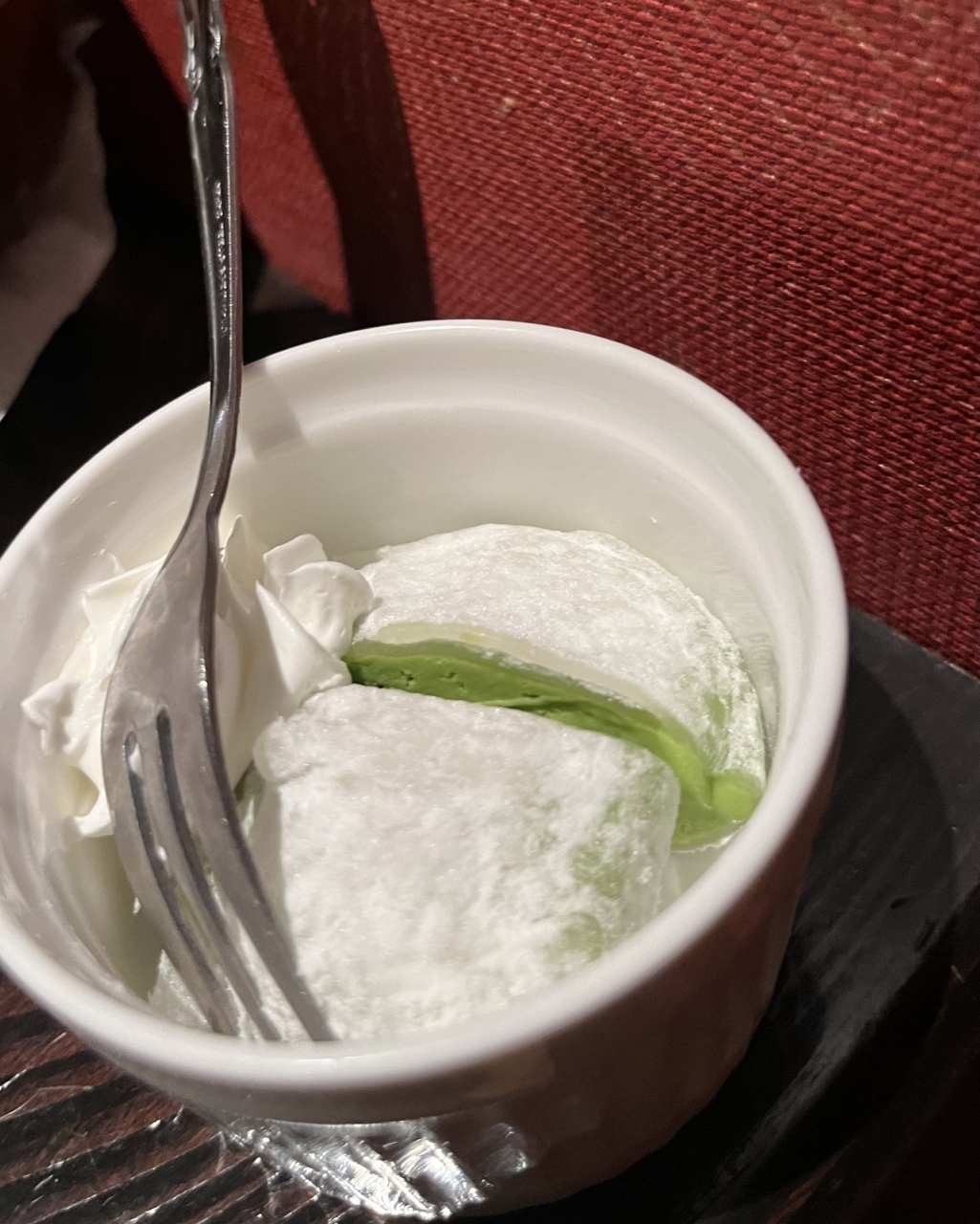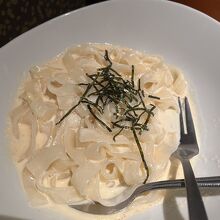 パスタそして デザートの 抹茶の牛皮包み も美味しかった。