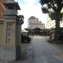 明治通りに面して山門が有り、本堂裏手の墓地の奥に、石仏群が有ります。