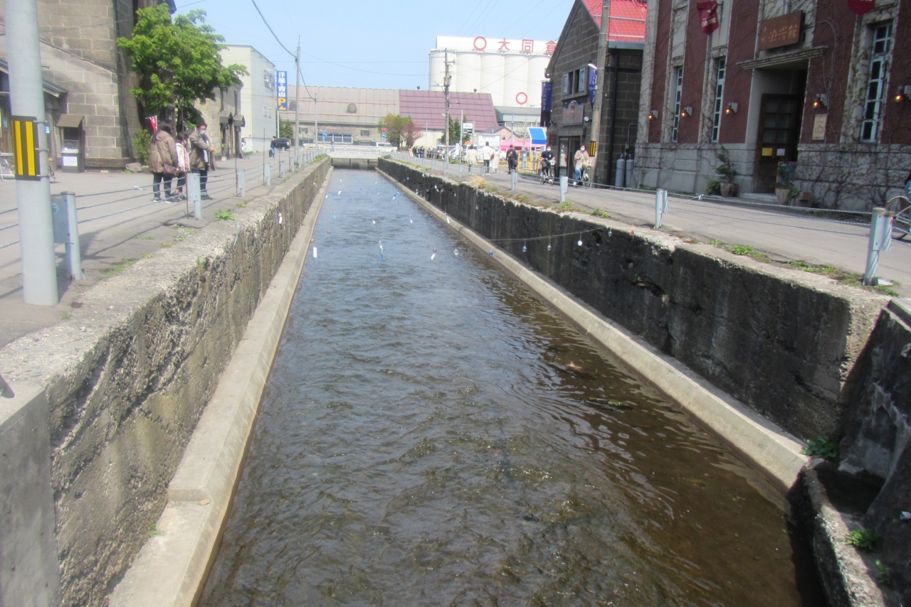 ちょうど小樽浪漫館やローソンの前を流れています。