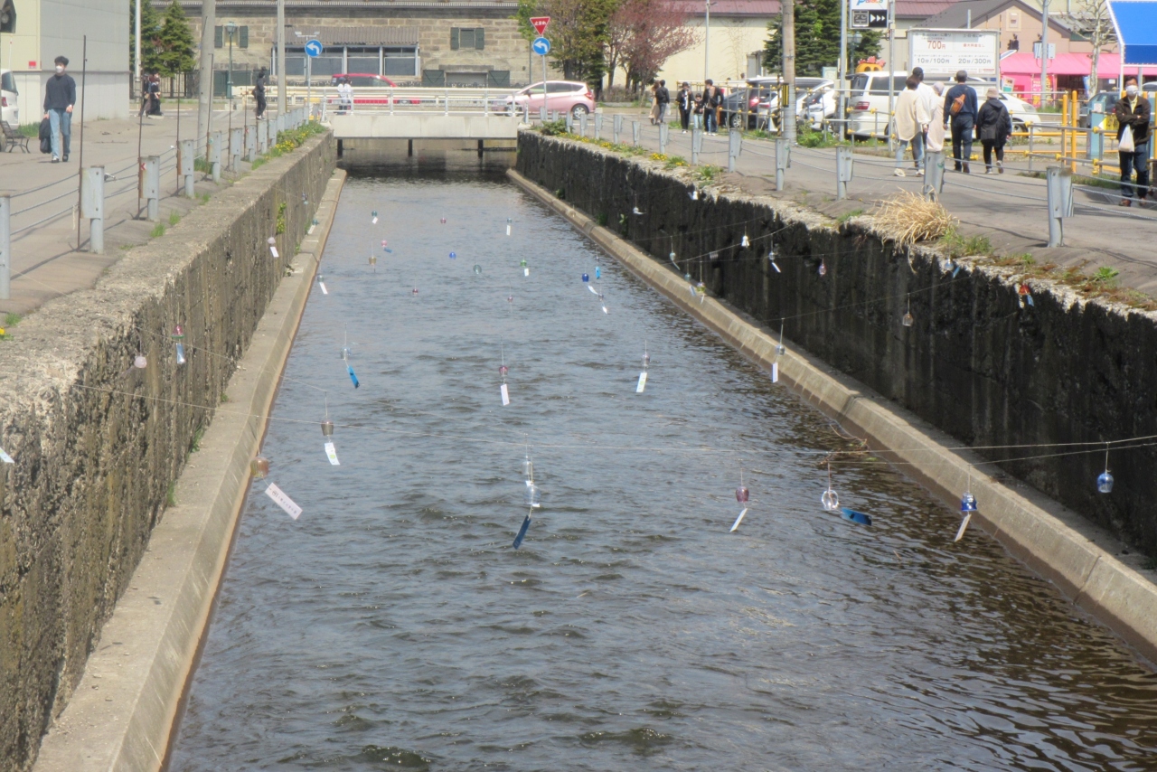 小樽浪漫館の前では川面に風鈴などの飾りつけがなされていることがよくあり、風情があるので、よく写真を撮っている人だかりがある時があります。