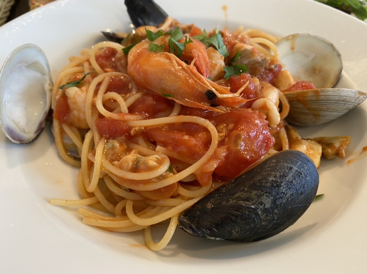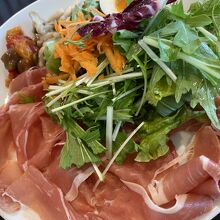 道の駅いちかわにあるお店です。ゴールデンウィークのランチタイムに訪れました。当然ですが、かなり混み合い待ちました。30分くらい待って座ることが出来ました。生ハムとパスタのセットメニューを注文。切りたての生ハムは本当に美味しいです。パスタもまずまずの美味しさです。