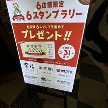 6店舗 6スタンプ集めると 次回使える お食事券 1000円プレゼント