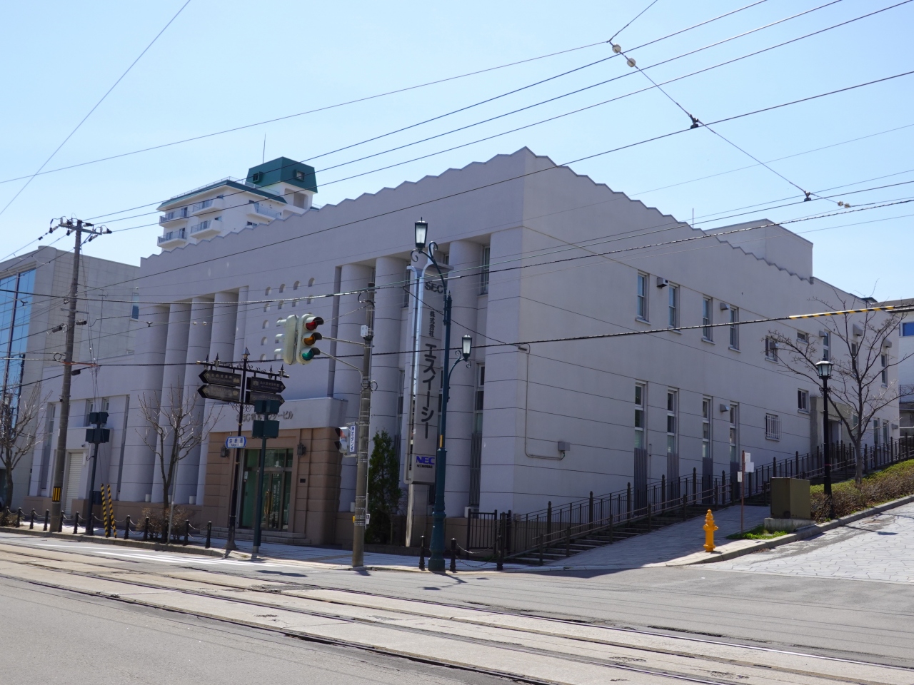 函館の八幡坂を下り、海峡通りと名前を変える交差点にあるのが「SEC電算センタービル」です。かつて第百十三国立銀行本店として使われていた大正15年竣工の歴史あるビルです。正面に多数の円柱を配したヨーロッパ風のファサードと、側面が八幡坂の勾配にあわせるように斜めになっている点に興味がわきました。函館を代表する重厚感ある建築物だと思います。