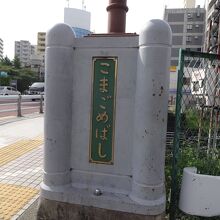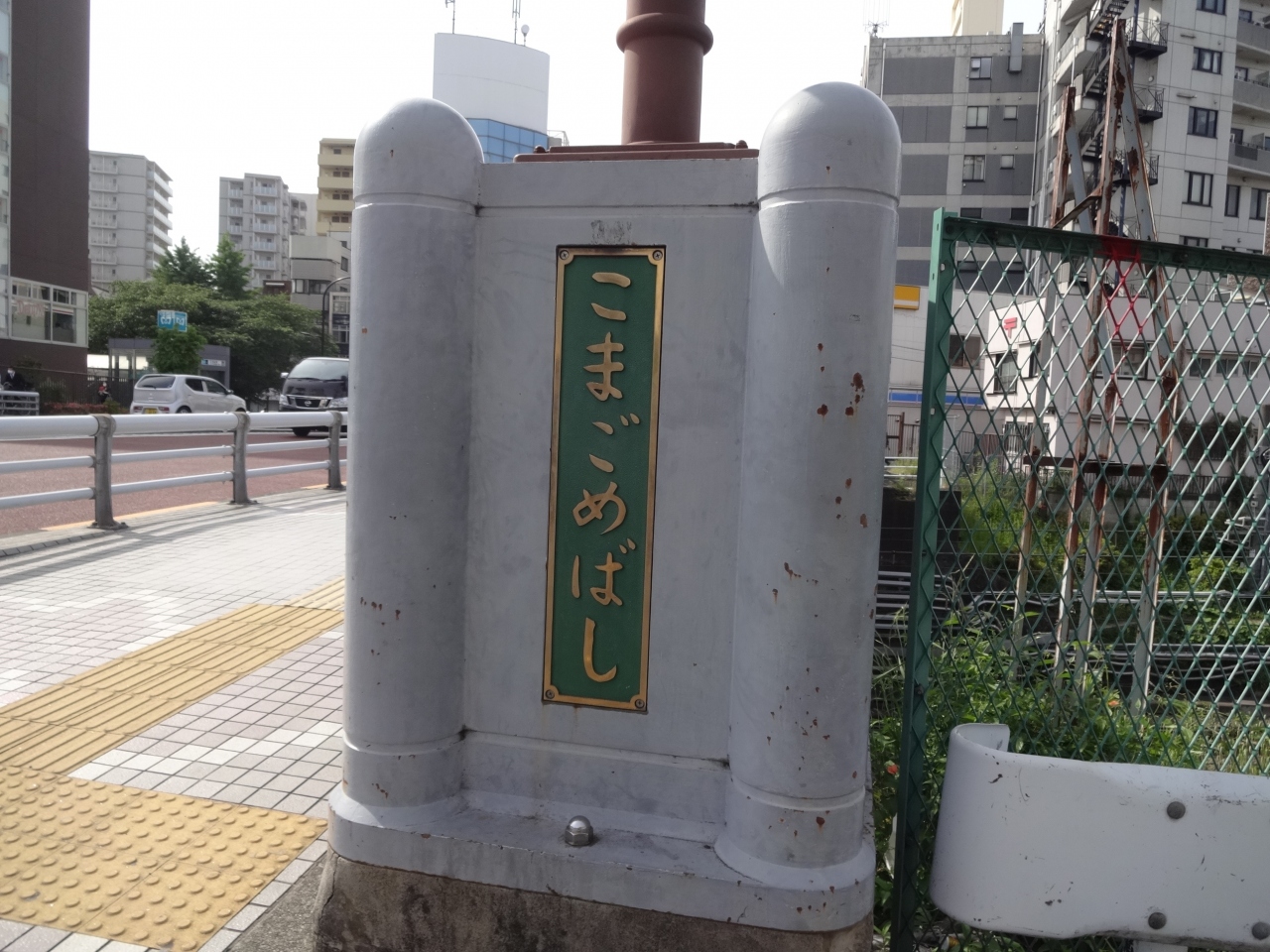 駒込駅の北側、本郷通り沿いの交番がある辺りには、古い駒込橋が展示してあります。