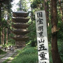 バスを降りて向かった羽黒山 五重塔 (国宝)は、羽黒山参道の一の坂上り口の杉並木の中にあり、東北地方では最古の塔といわれ、平将門の創建と伝えられます。