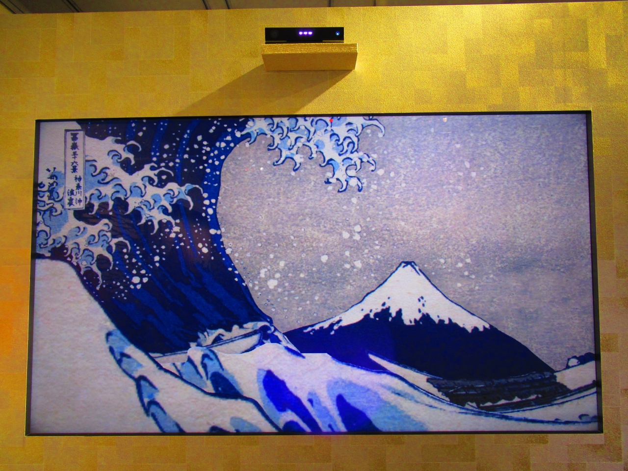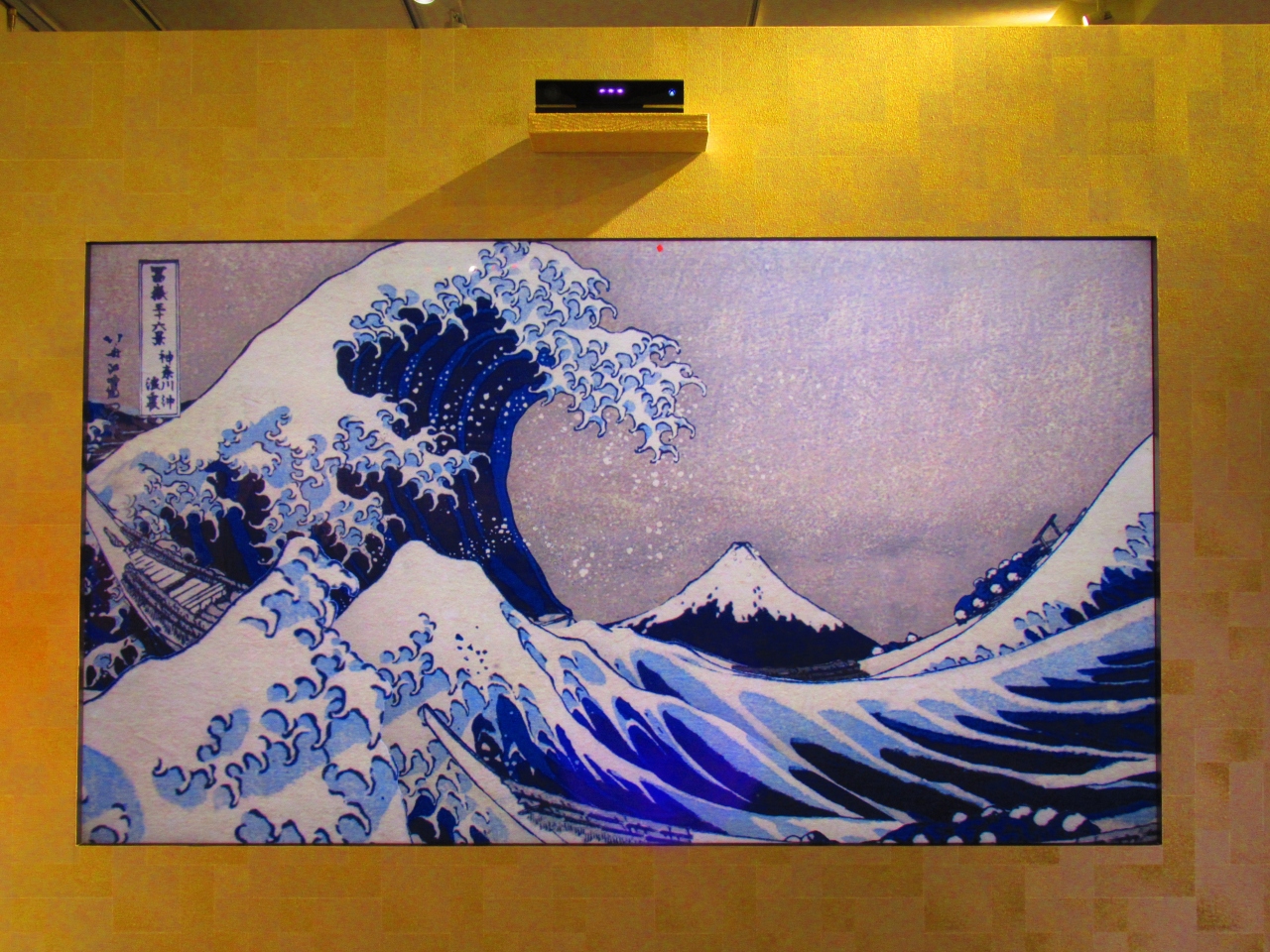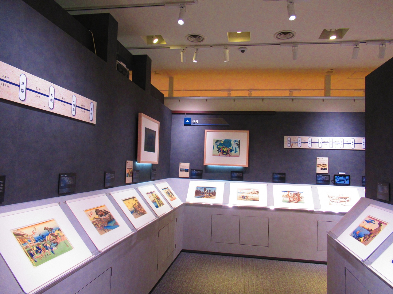 「Digital×北斎【破章】北斎VS廣重」は『冨嶽三十六景』と『東海道五拾三次』をデジタルで再現したもので、現物は保護のため照明が暗かったり近付いて見れなかったりしますが、それがとても見やすくなっています。タッチレスで操作できるパネルがあったり最新の技術も経験できます。スタッフの目が行き届いていて、操作方法も教えてくれます。いろいろな映像があるので、時間があれば満喫できると思います。展示スペースは狭いのですが、予約制なので、混んでいませんでした。写真撮影は自由でした。