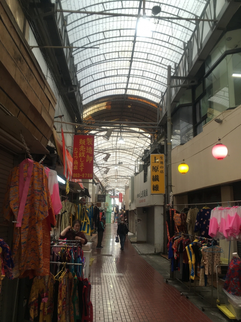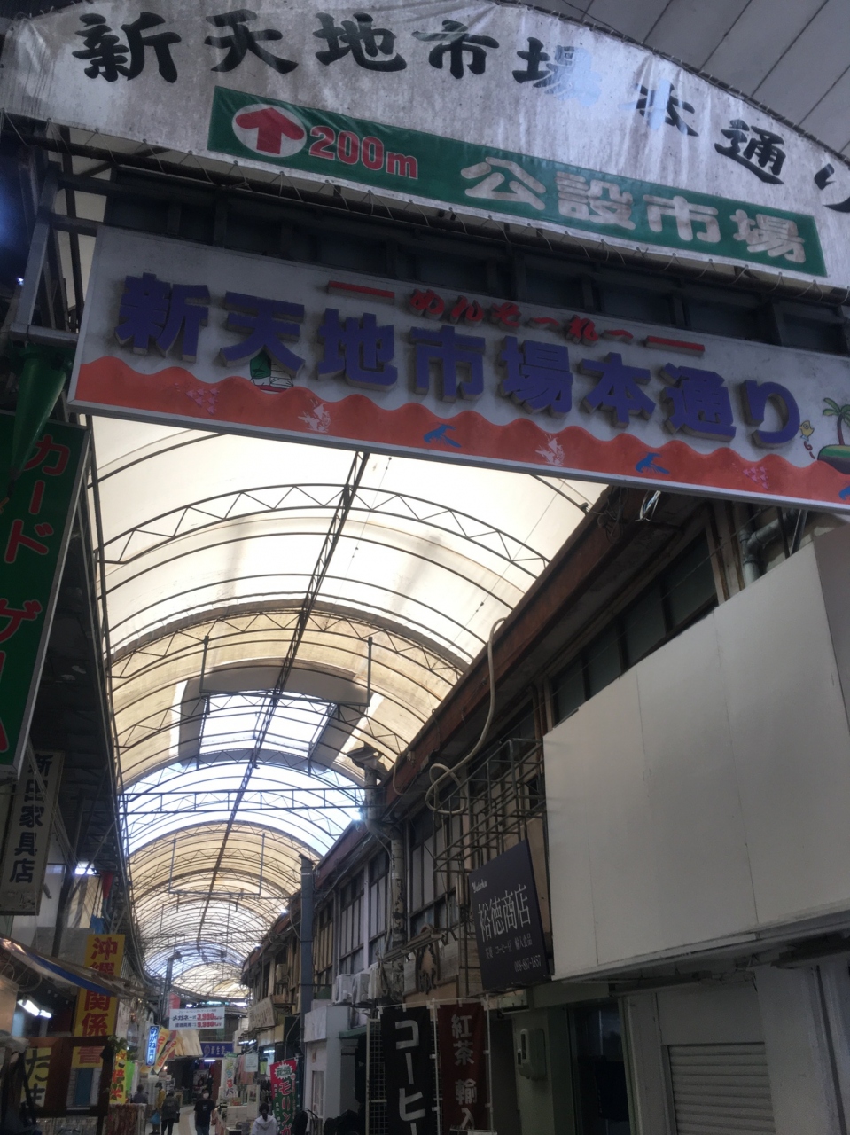 ゆいレール「牧志駅」ました「美栄橋駅」から徒歩で15分ほどです。「市場中央通り」の奥に繋がるアーケード街で、衣料品や青果店、飲み屋さんなどが軒を並べています。観光客はほとんどおらず生活感を感じる商店街でした。
