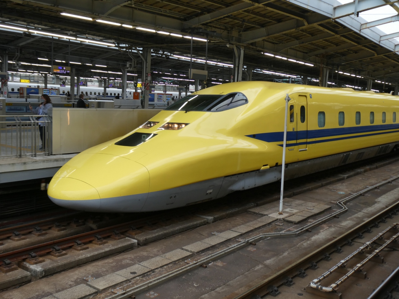 東海道・山陽新幹線で10日に1回のペースで新幹線電気軌道総合試験車(ドクターイエロー)が、検査のため、東京から博多までを2日間かけてのぞみまたは、こだまの運用で走行し検測する新幹線のお医者さんで、運が良ければ見ることができます。